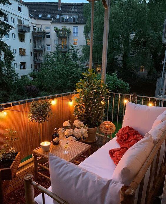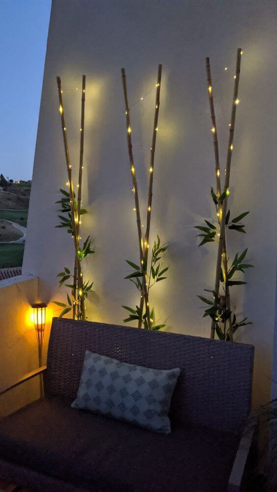 #5 DIY Bamboo Idea with String Lights for Balcony