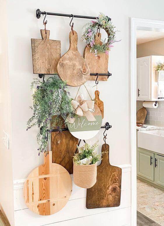 #10 Cozy Rustic Kitchen Wall Decor With Cutting Boards