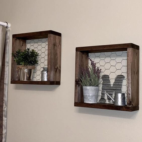 #7 Wood and Chicken Wire Shelves Farmhouse Style Wall