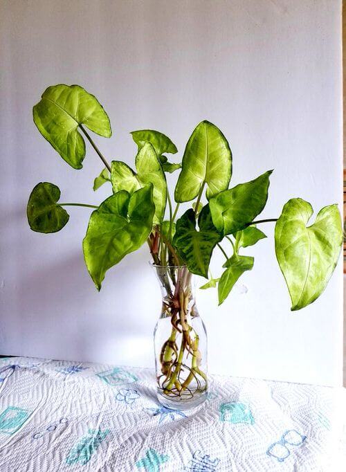 Source: Balcony Garden WebThe Arrowhead Plant has striking, arrow-shaped leaves that look great in water. Cuttings root easily and keep their vibrant green color indoors. Place them in a clear vase and change the water regularly.