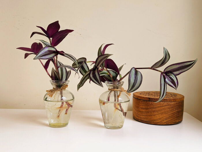 Source: EtsyWandering Jew plants are famous for their purple and green striped leaves. They root quickly in water and create a bold display indoors. Use a shallow vase and arrange several cuttings for fullness.