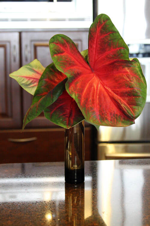 Change the water weekly to prevent rot. They thrive in warm conditions and bring bold color indoors. Caladiums make stunning table centerpieces.