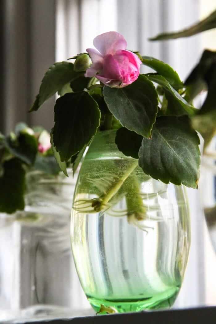 Source: The SpruceImpatiens bring cheerful flowers into your home even in water. Their bright blooms continue for weeks with proper light. Place stem cuttings in a jar of water and they ll root quickly.