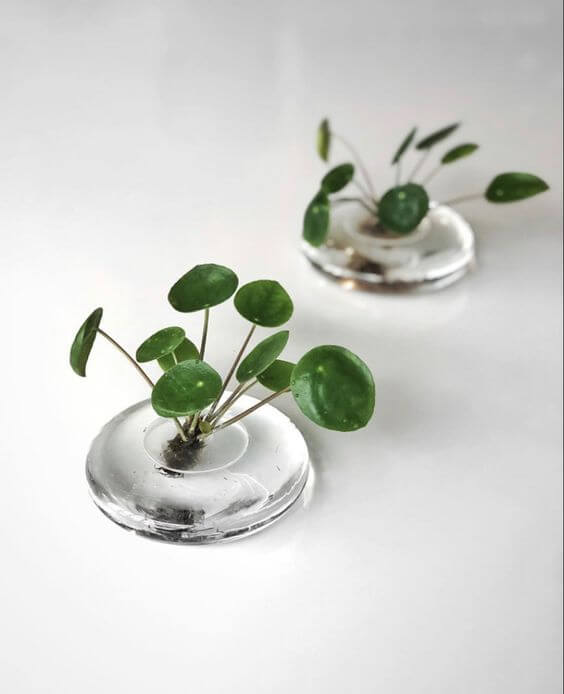 Source: BabyLNTSChinese Money Plant, also known as Pilea, grows round coin-like leaves. It roots easily in water from leaf or stem cuttings. Use a narrow vase to keep cuttings upright.