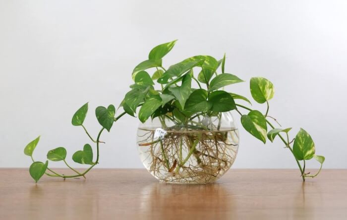 Source: Gardener’s PathPothos adapts beautifully to water and is nearly foolproof for beginners. Its trailing vines come in shades of green, gold, and white. Place stem cuttings in a jar of water and watch them root within days.