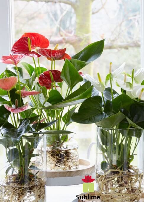 Source: Sublime FleuristeAnthurium shows off glossy leaves and long-lasting red or pink spathes. It can adapt to water culture with proper care. Place the roots in clean water and keep them in bright, indirect light.