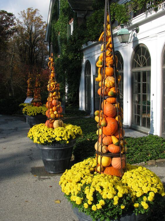 #21 Entryway Path Fall Decoration With Pumpkin And Flower Pots