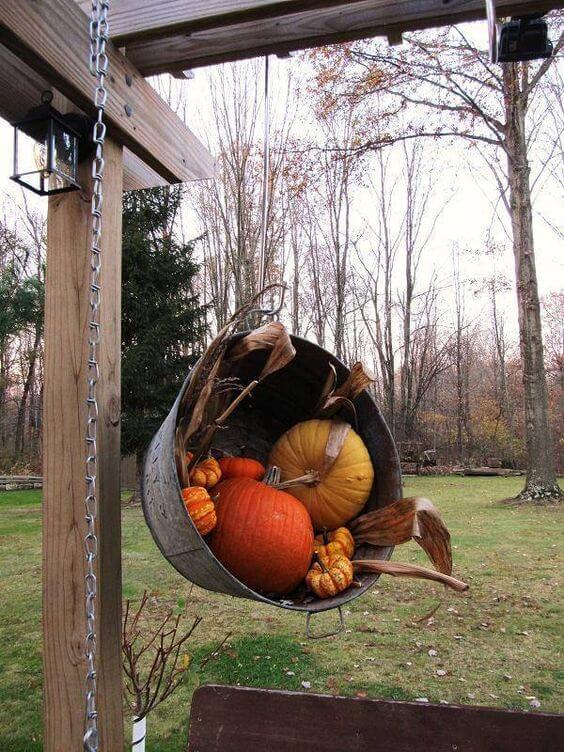 #6 Haning Metal Bucket Fall Decoration For Front Yard
