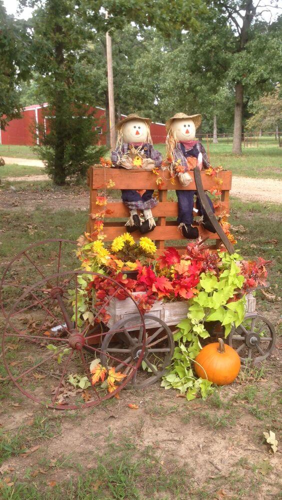 #19 Pallet Fall Decoration With Scarecrows