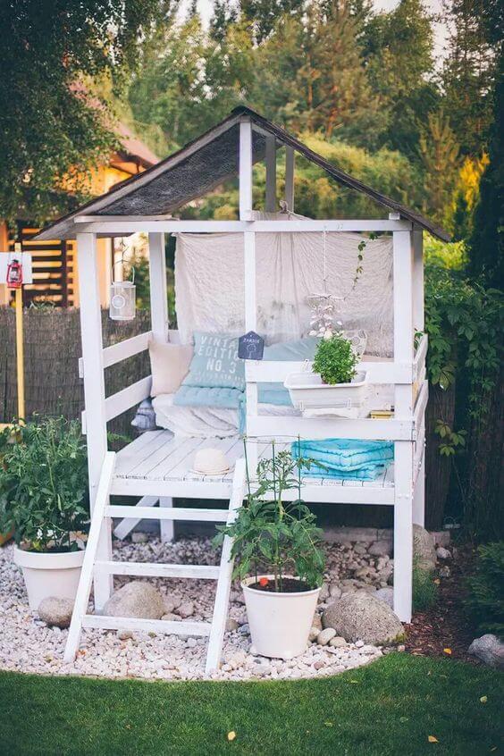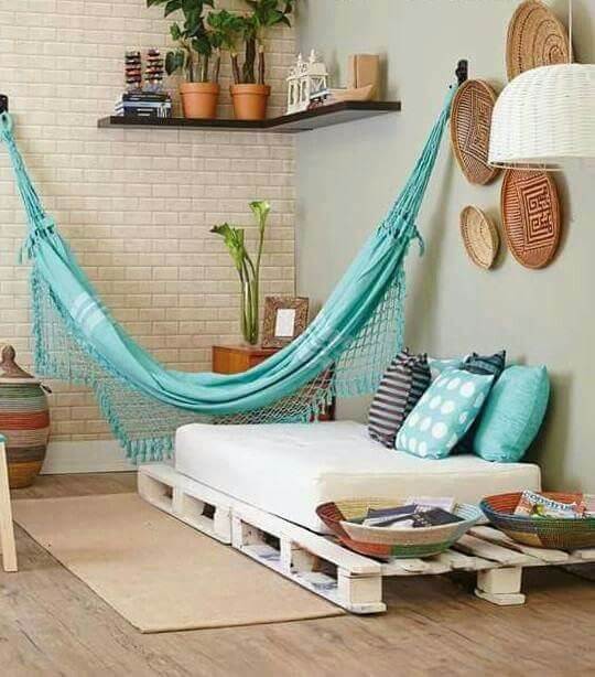#5 Small Reading Nook With A Pallet Seat and A Hammock