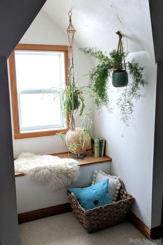 #19 A Simple Reading Nook By Window With Hanging Plant Pots
