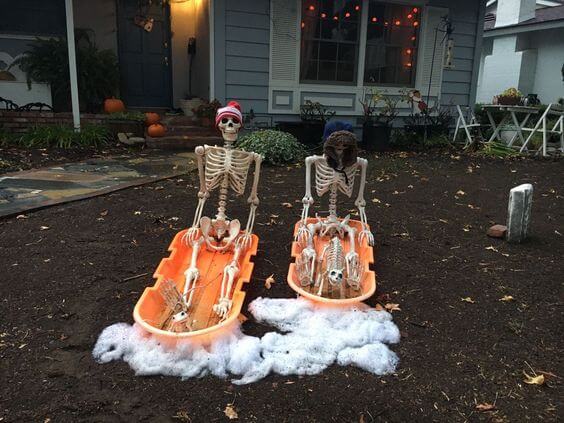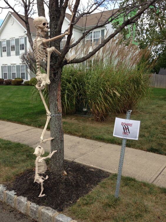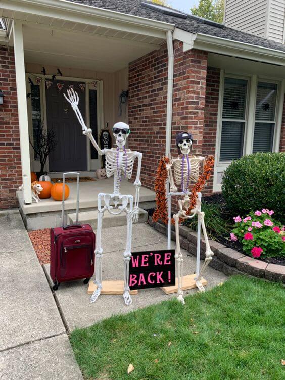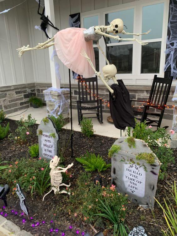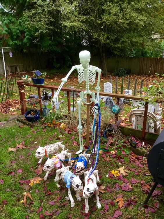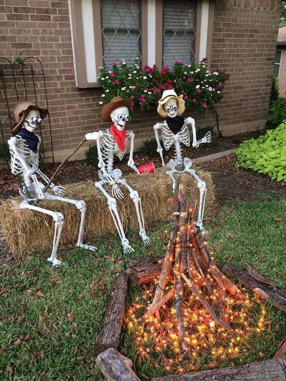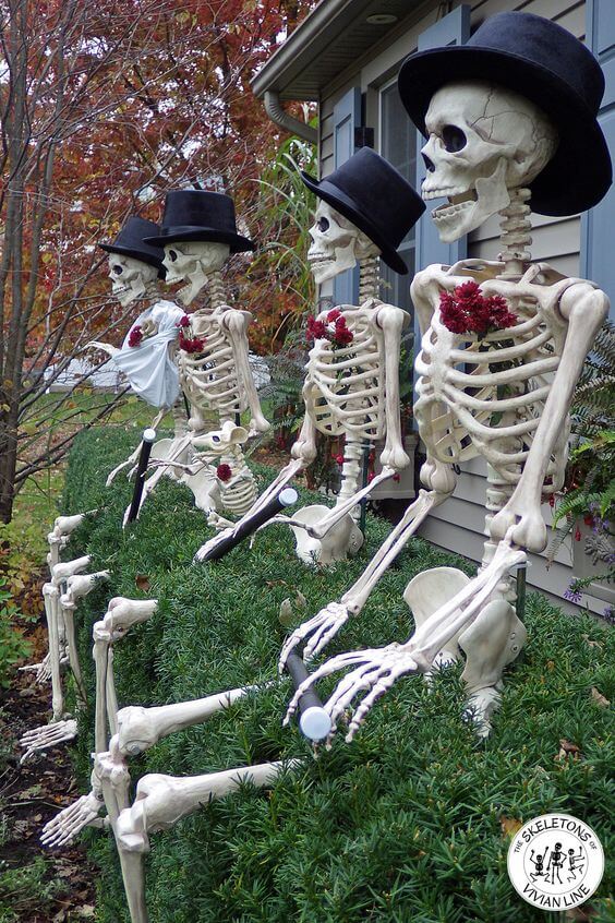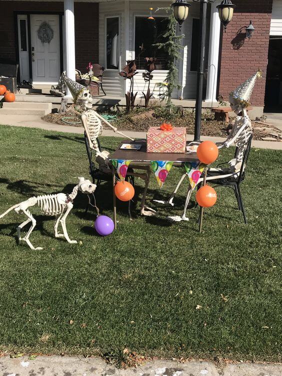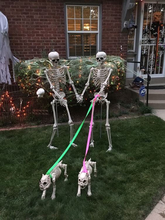 There are plenty of ways to display skeletons, simply you just need to choose a theme creatively, from skeleton campfires, and singing a song, to skeleton dog attacks, you can really step up your Halloween decorating game and take your outdoor space to a whole new creative level!