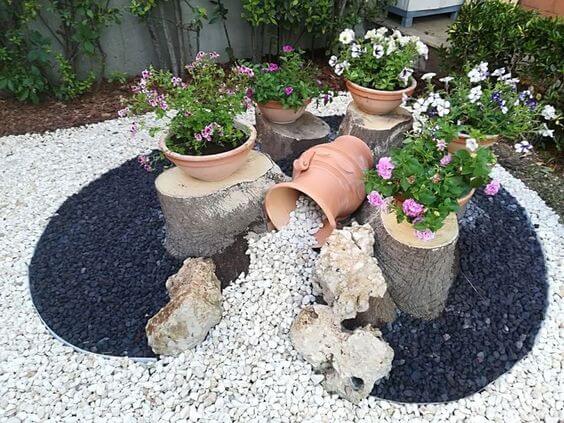 #24 DIY Spilled Rock Garden with Old Tree Stumps