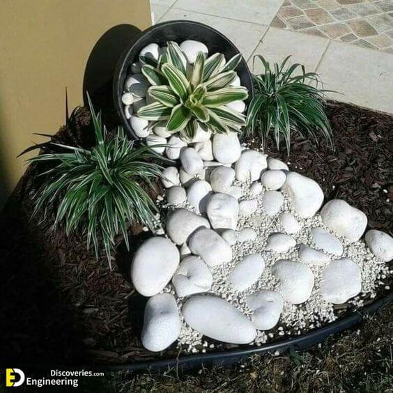 These ideas are designed in different styles, from smart to rustic, or close to nature, all are listed here. Whether your favorite is, you will find one that is suitable for your desire. What is more, some ideas can be taken inspiration by old things around your house like old pots, metal milk jugs, or natural materials such as pebbles, rocks, and bamboo.
