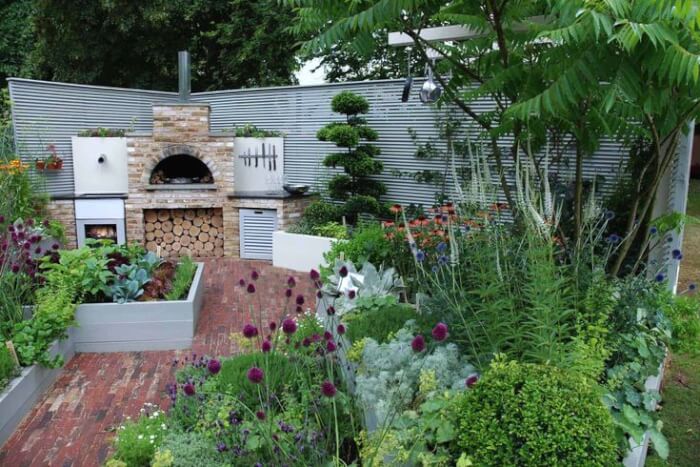 #24 A Beautiful Vegetable Garden With Outdoor Fireplace