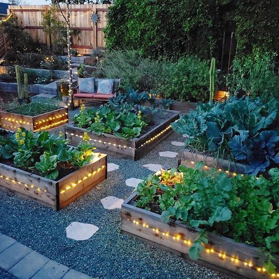 #1 Adding String Lights To Liven Your Vegetable Garden More Lively In The Evening