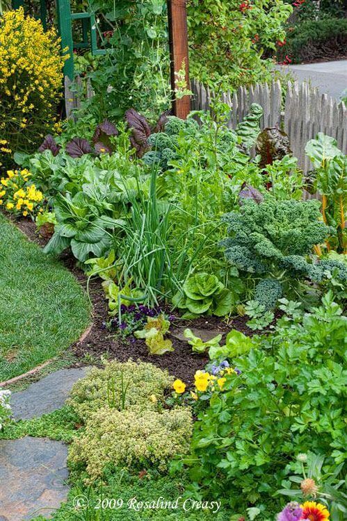 Mixing in herbs, leafy greens, and flowers will make the garden both beautiful and productive.