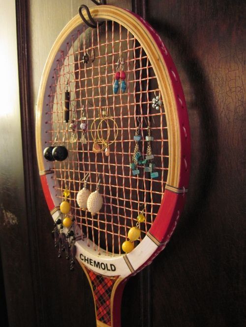 Give an old tennis racket a second life by transforming it into a fun and quirky earring holder. The strings create a ready-made grid that s perfect for hanging earrings of all shapes and sizes.