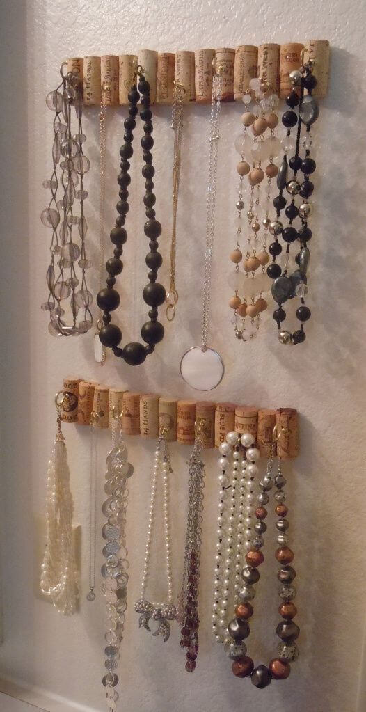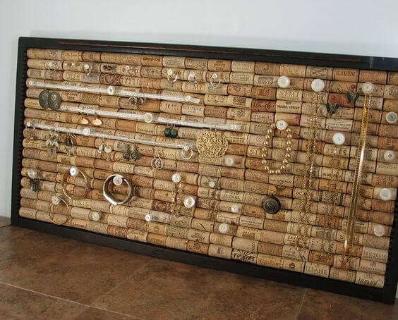 Turn leftover wine corks into a clever jewelry organizer that s both practical and eco-friendly. Mounted inside a frame, the corks provide the perfect surface to pin earrings, necklaces, and bracelets with ease.