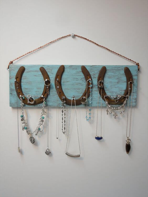 You can hang this piece in your bedroom or entryway for a decorative storage solution that adds personality to your walls. With just a few old horseshoes and a sturdy board, you ll have a jewelry holder that feels unique and meaningful.