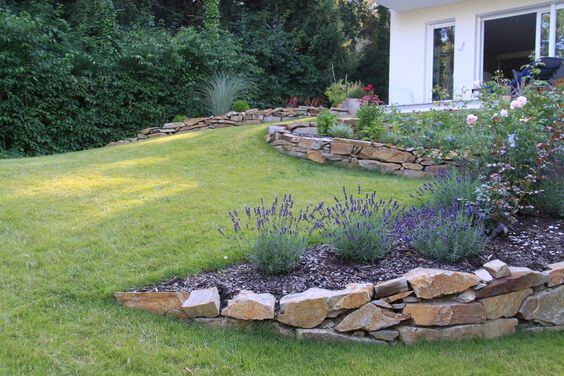 #9 Create A Flower Garden for Sloped Areas and A Large Green Lawn