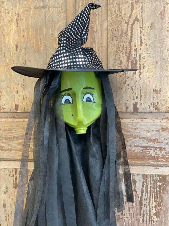 Here s a witchy Halloween craft that turns something simple into a show-stopper for your front yard or porch. This spooky face is made from a repurposed plastic jug, painted a classic green to give it that wicked witch vibe.