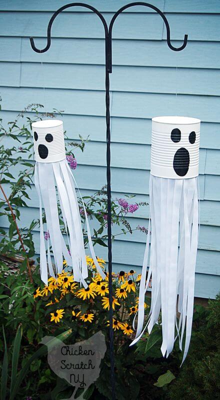 These tin can ghost windsocks are a perfect blend of spooky and playful. With just a few empty cans, some white paint, and strips of fabric or ribbon, you can craft these floating spirits in no time.