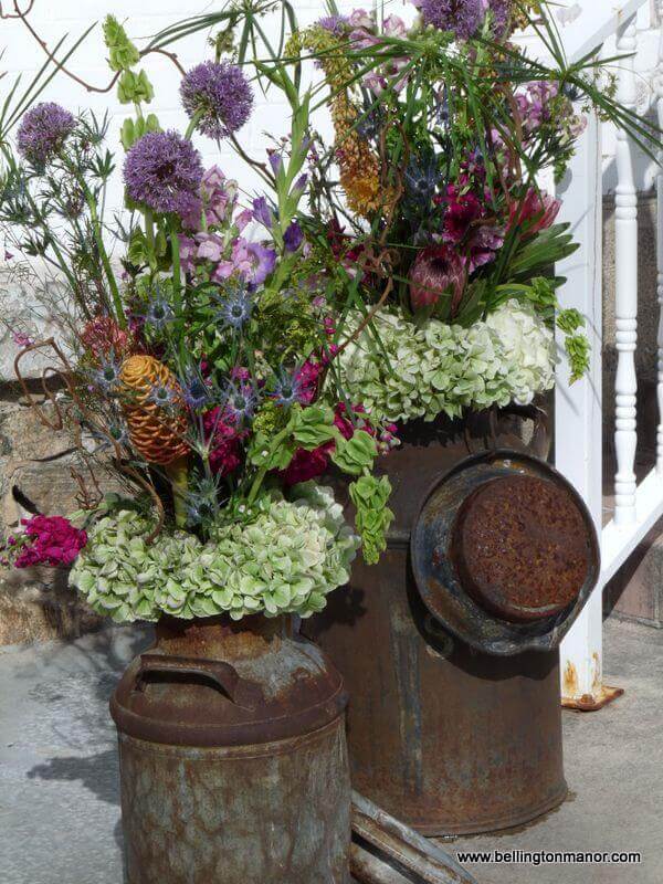 #22 A Vintage Flower Vases With Rusty Milk Jugs
