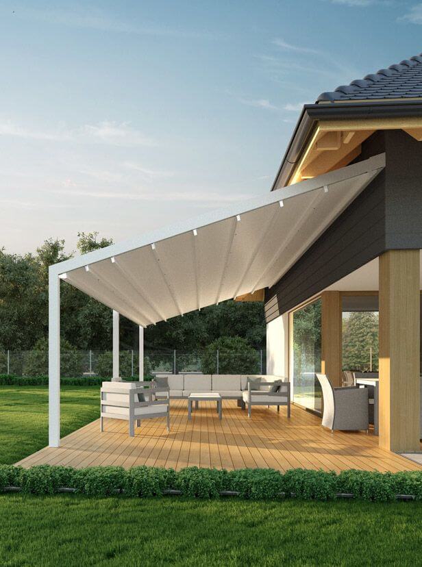 Source: pinterest#3. Fixed Pillars With Folding Awning