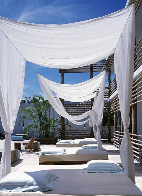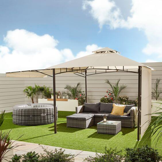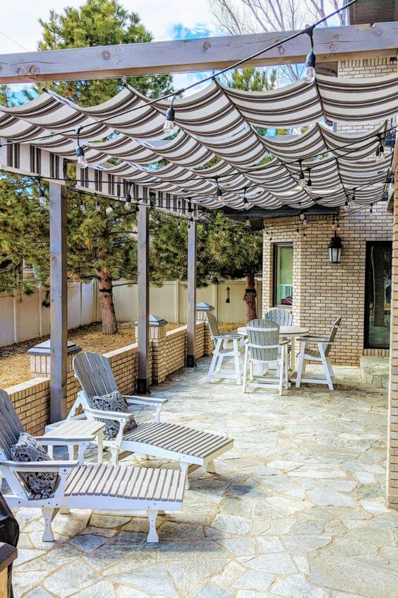 Source: pinterestFor the cold, choose vertical screens or shade sail designs. During the summer, this roof provides cover from the terrace canopy, sheltering from the heat on some days and the rain on others. It is the ideal asset to any garden because it is also very beautiful.