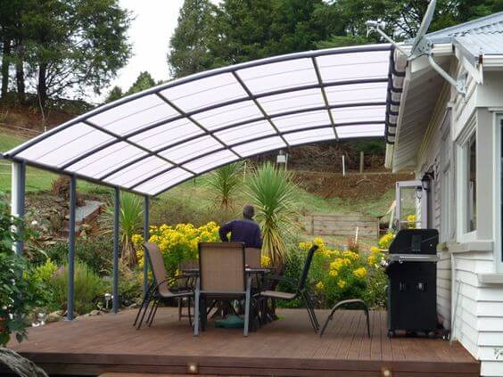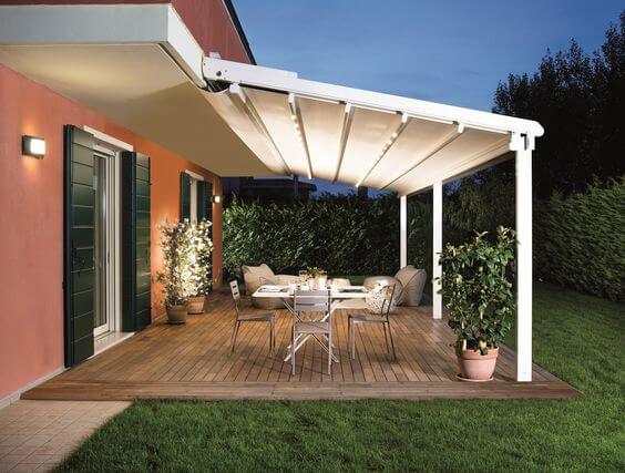 Source: pinterestClassic but gold designs for permanent louvered roofs are also possible, such as these patio awnings with a fixed roof for optimal veranda coverage and a rigid structure. Moreover, curved designs are recommended for large houses whose gardens are spacious.