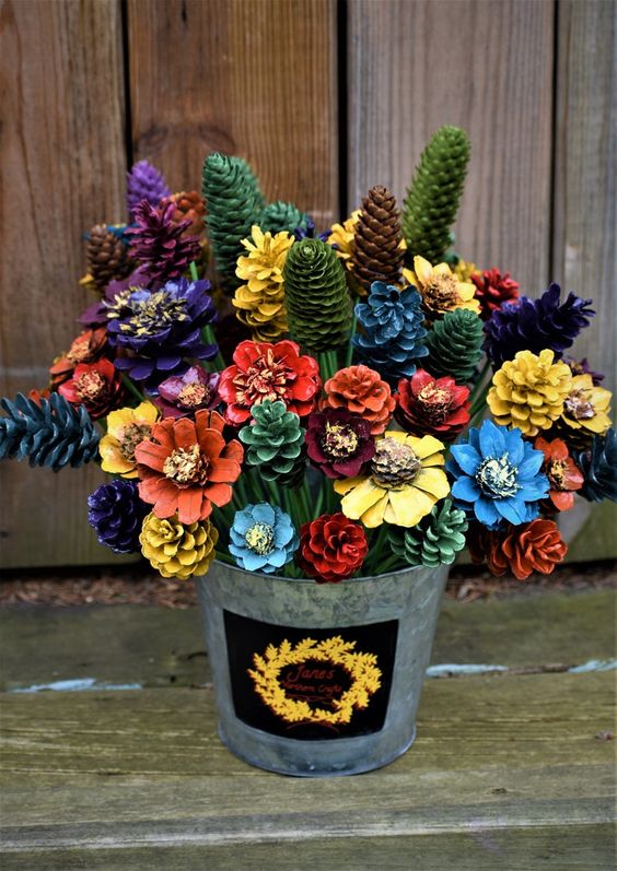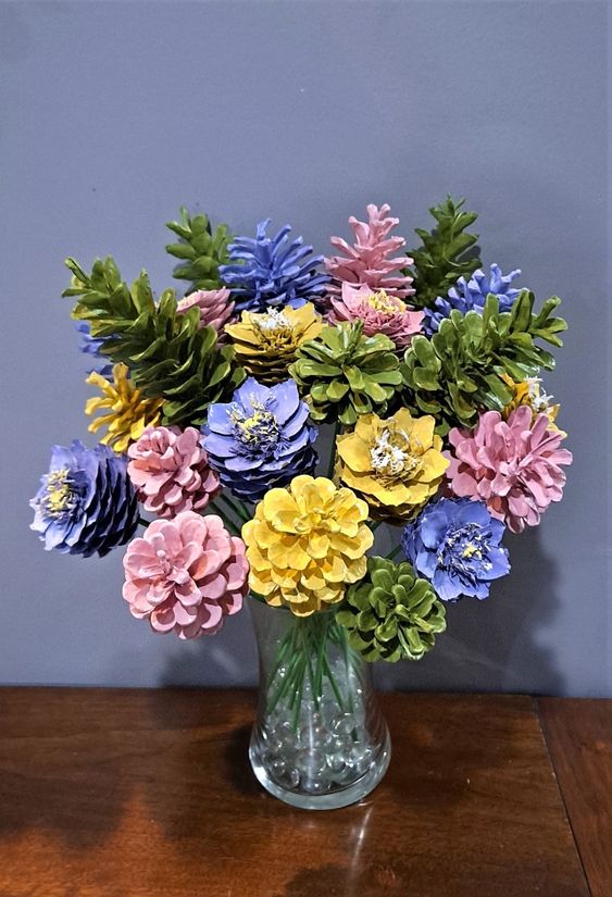 #4. Colorful Pinecone Flower Bouquet