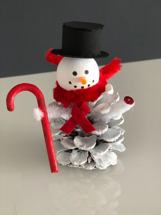 #6. Lovely Pinecone Snowman Craft
