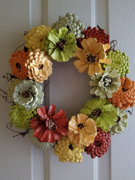 #2. Vibrant Pinecone Flower Wreath