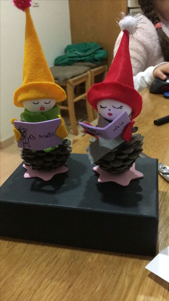 #24. Adorable Pinecone Caroler Figurines