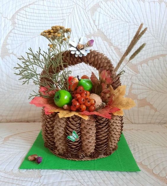 #23. Charming Pinecone Harvest Basket