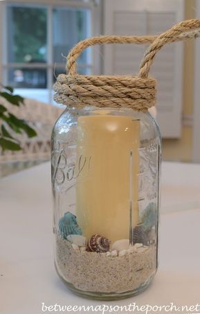 Place in a candle, then decorate with shells, pebbles, or tiny pieces of driftwood. Tie nautical rope around the rim for a finished look, and enjoy the cozy ambiance it brings to your evenings.