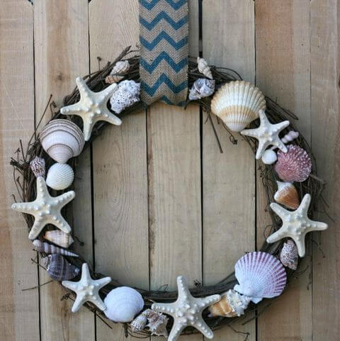 This coastal wreath is a lovely way to welcome guests with a touch of the seaside. Made from a simple twig base, it s decorated with shells and starfish that instantly bring beachy charm to your door or wall.