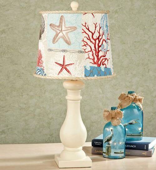 This coastal lamp shade instantly brightens a room with seaside charm. The playful design of starfish, coral, and ocean colors turns an ordinary lamp into a cheerful accent piece.