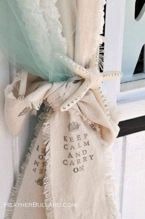 You can make your own by tying a strip of canvas or cotton fabric into a knot and securing it to your door handle. Attach a starfish or seashell with hot glue or twine for the finishing touch.