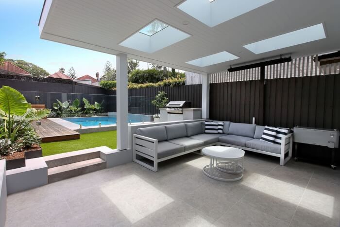 #7. Mid-century Modern Backyard With Sofa And The Pool