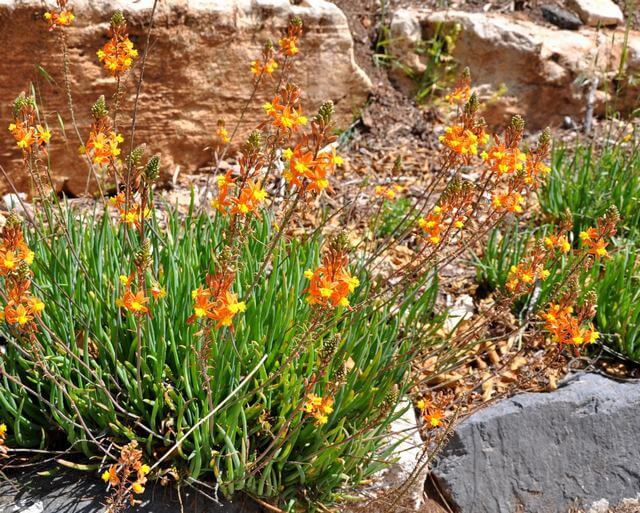 Image Credits: SustainablelandscapessdWith starry orange blooms and succulent-like foliage, Orange Stalked Bulbine (Bulbine frutescens) adds a touch of the exotic to dry gardens.