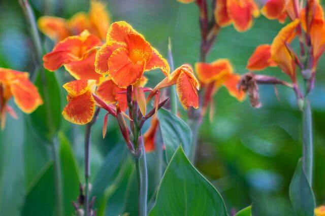Image Credits: GardenerspathCanna lilies are the drama queens of the garden, with their bold orange blooms and lush tropical leaves; they bring instant flair.