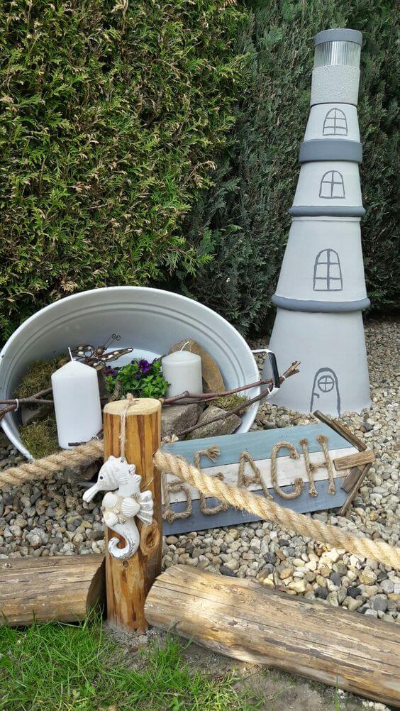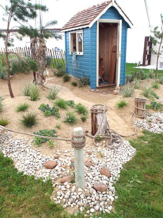 Ropes, fish nets, driftwood, boats, and buoys can be inserted into your new design line along with sand and seashells to obtain the desired result. Enjoy your outdoors to the fullest and be sure that you feel comfortable in your own home the upcoming summertime!