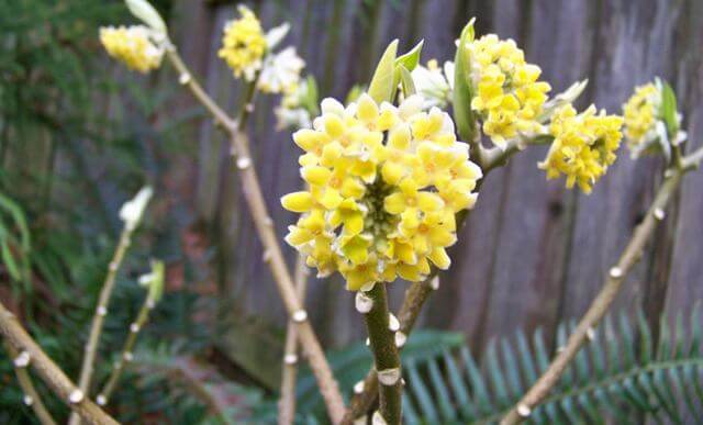 Image Credits: PortlandnurseryEdgeworthia is a fast-growing shrub that s surprisingly fragrant and unique. It shows off silvery flower buds all winter, then bursts into clusters of yellow blooms in early spring.