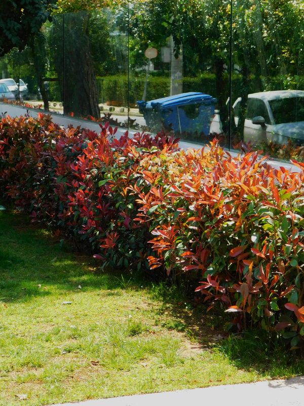 Photinia makes an instant impression with its fiery red new leaves that turn a deep green as they mature. It grows fast and forms a dense, lush hedge when regularly pruned.