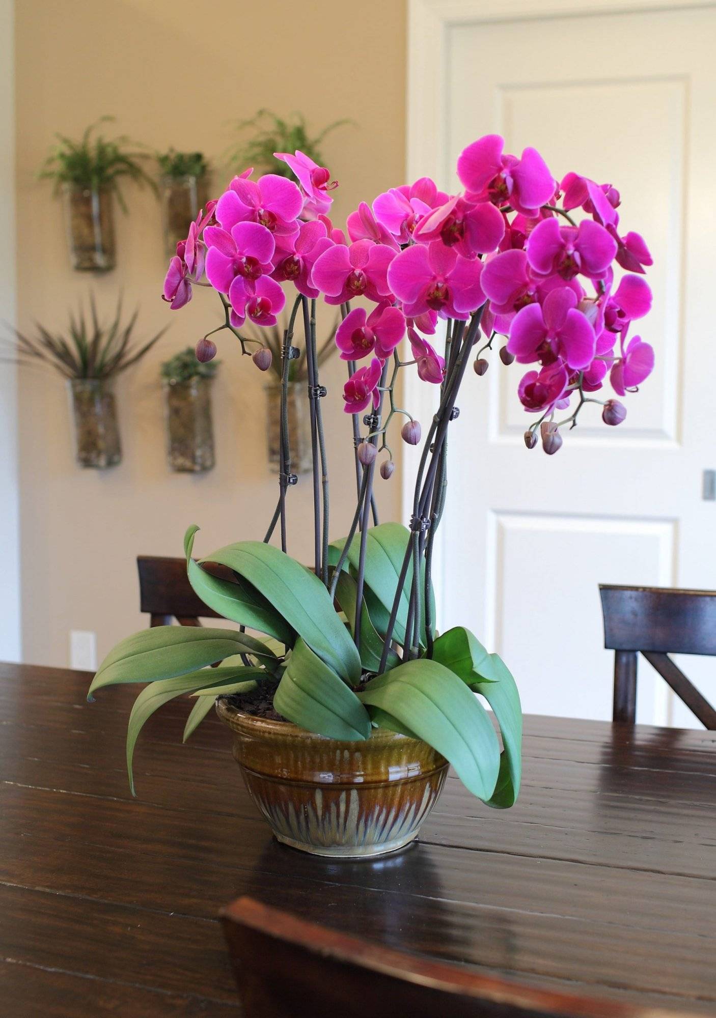Orchids instantly elevate a room with their delicate flowers and sculptural elegance. These beauties prefer filtered light and a bit of humidity, making them great for bright living rooms.