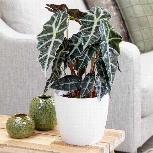 Image Credits: HandyandysnurseryWant something bold? The African Mask Plant steals the show with its deep green leaves and bright white veins. It craves bright, indirect light and some extra humidity, so keep it away from cold drafts.