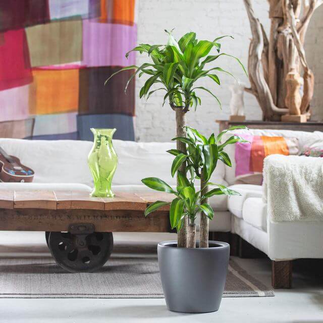 Image Credits: My City PlantsThe Corn Plant offers tall, cane-like stems with arching green leaves that resemble corn stalks hence the name. It does well in low to medium light and prefers dry spells between waterings.