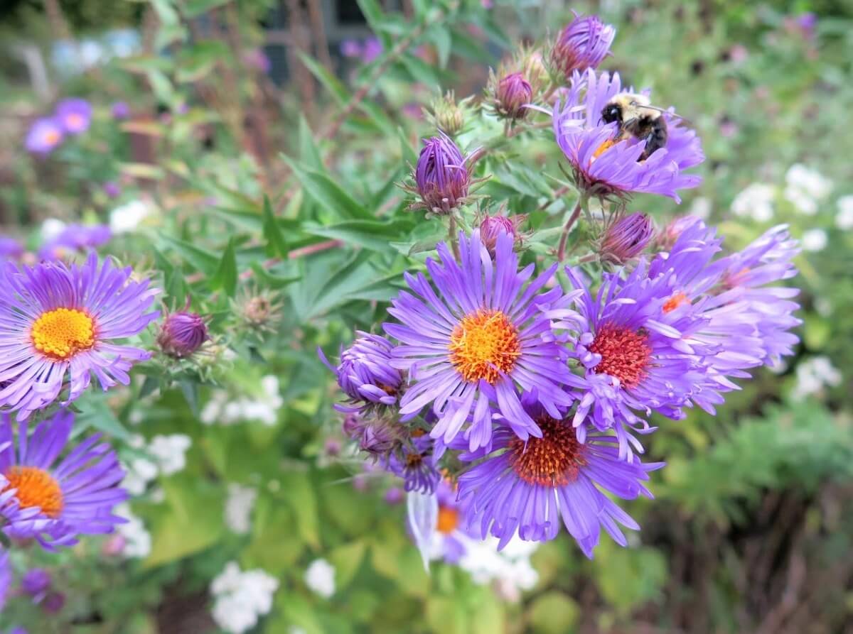 Azure Aster offers late-season blue blooms that brighten gardens in fall. It grows well in full sun with moist but well-draining soil. Plant it in borders where its daisy-like flowers can complement autumn foliage.